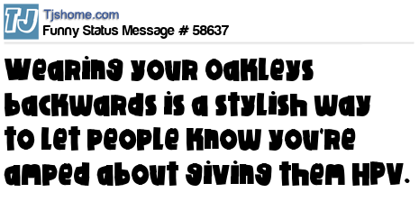 X says Wearing your Oakleys backwards is a stylish way to let people know you're amped about giving them HPV.