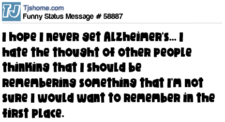 X I hope I never get Alzheimer's... I hate the thought of other people thinking that I should be remembering something that I'm not sure I would want to remember in the first place.