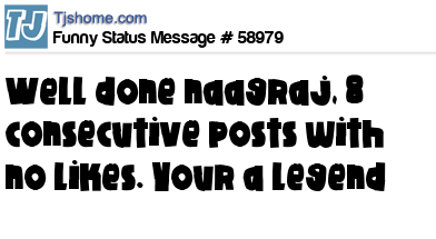 X well done naagraj, 8 consecutive posts with no likes. Your a legend