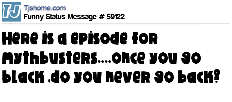 - # 123653 Still waiting on the "Once you go black, you'll never go back" episode of Mythbusters...