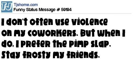 X says I don't often use violence on my coworkers. But when I do, I prefer the pimp slap. Stay frosty my friends.