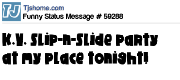 X says K.Y. Slip-n-Slide party at my place tonight!