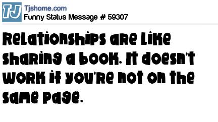X is Relationships are like sharing a book. It doesn't work if you're not on the same page.