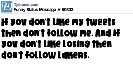 X is If you don't like my tweets then don't follow me. And if you don't like losing then don't follow Lakers.