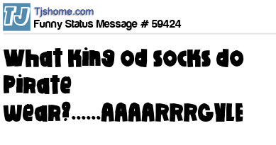 X is What king od socks do Pirate wear?......AAAARRRGYLE