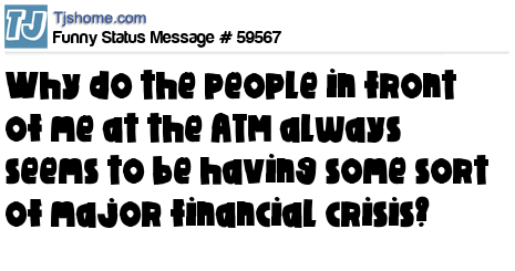 - # 102752 Why do the people in front of me at the ATM always seems to be having some sort of damn major financial crisis?