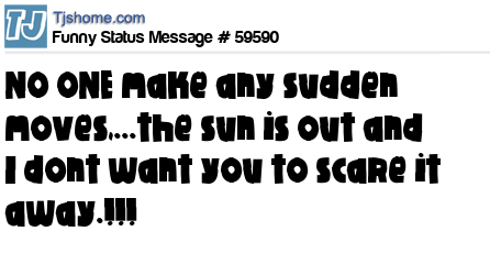 X is NO ONE make any sudden moves,...the sun is out and I dont want you to scare it away.!!!