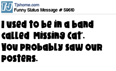 - # 33697 I used to be in a band called 'Missing Cat'................. You probably saw our posters.