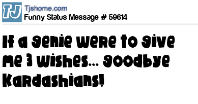 - # 58934 If a genie ever gives me three wishes, goodbye Kardashians.