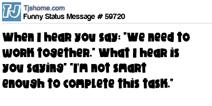 X says When I hear you say: "We need to work together." What I hear is you saying" "I'm not smart enough to complete this task."