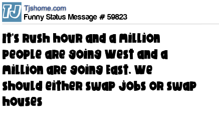 X says It's rush hour and a million people are going West and a million are going East. We should either swap jobs or swap houses