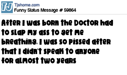 X says After I was born the Doctor had to slap my ass to get me breathing, I was so pissed after that I didn't speak to anyone for almost two years