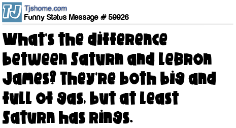 X What's the difference between Saturn and LeBron James? They're both big and full of gas, but at least Saturn has rings.