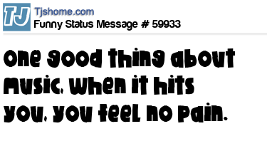 - # 14968 One good thing about music. When it hits you, you feel no pain.