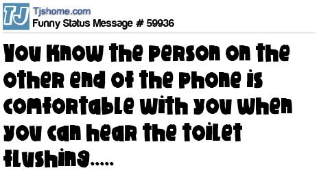 X is You know the person on the other end of the phone is comfortable with you when you can hear the toilet flushing.....