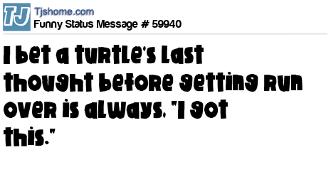 X I bet a turtle's last thought before getting run over is always, "I got this."