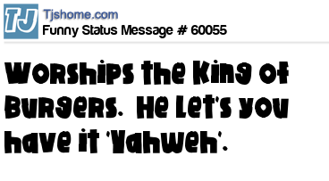 X worships the King of Burgers. He let's you have it 'Yahweh'.