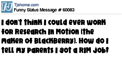 X I don't think I could ever work for Research In Motion (the maker of BlackBerry). How do I tell my parents I got a RIM job?