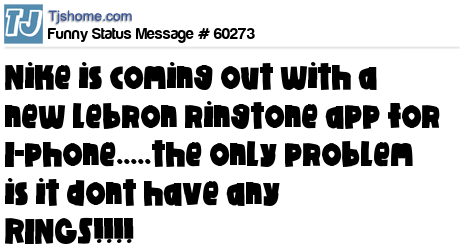 X is Nike is coming out with a new Lebron ringtone app for I-phone.....the only problem is it dont have any RINGS!!!!