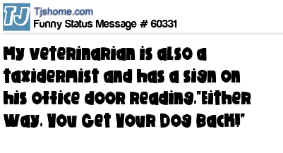 X My veterinarian is also a taxidermist and has a sign on his office door reading,"Either Way, You Get Your Dog Back!"