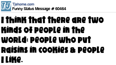 X I think that there are two kinds of people in the world: people who put raisins in cookies & people I like.