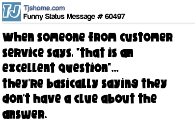 X When someone from customer service says, "that is an excellent question"... they're basically saying they don't have a clue about the answer.