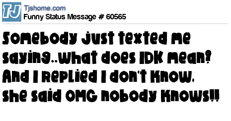 X says Somebody just texted me saying..what does IDK mean? And I replied I don't know, she said OMG nobody knows!!