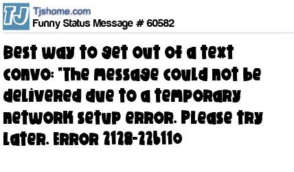 - # 51907 the best way to get out of a text conversation: "The message could not be delivered. Please try again later. Error 226110."