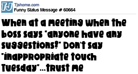 X says When at a meeting when the boss says "anyone have any suggestions?" Don't say "inappropriate touch Tuesday"...trust me
