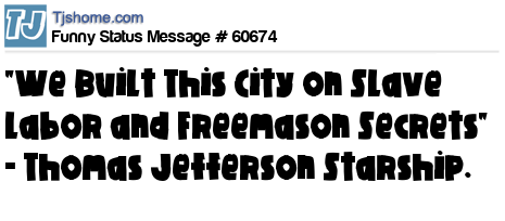 X "We Built This City on Slave Labor and Freemason Secrets" - Thomas Jefferson Starship.