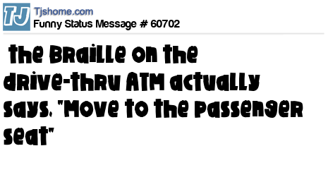 - # 71349 Just found out What the Braille on the drive-thru ATM actually says, "Move to the passenger seat"