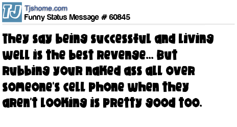 - # 110179 They say that being successful and living well is the best revenge. That may be so, but rubbing your naked ass all over someone's cell phone when they aren't looking is pretty good too ツ