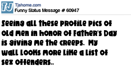 X seeing all these profile pics of old men in honor of Father's Day is giving me the creeps. My wall looks more like a list of sex offenders..