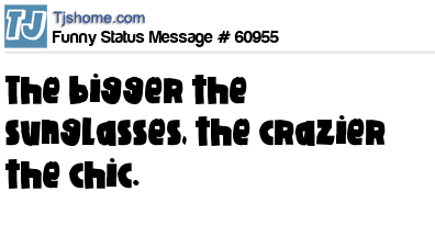 - # 54948 it just me or do women's sunglasses get bigger and bigger and bigger?!? Relax with those things, eventually we have to see your face with your colored contacts and fake eye lashes.