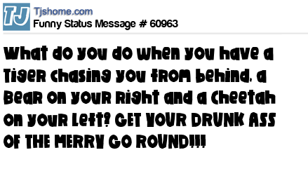 X What do you do when you have a Tiger chasing you from behind, a Bear on your right and a Cheetah on your left? GET YOUR DRUNK ASS OF THE MERRY GO ROUND!!!