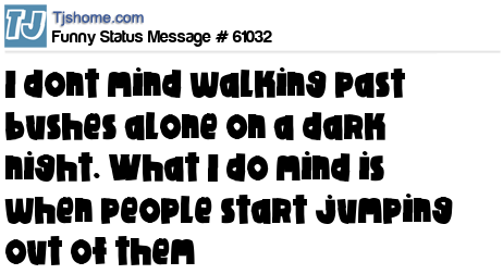 X is i dont mind walking past bushes alone on a dark night. What I do mind is when people start jumping out of them