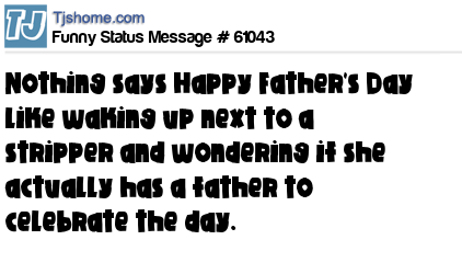 X Nothing says Happy Father's Day like waking up next to a stripper and wondering if she actually has a father to celebrate the day.