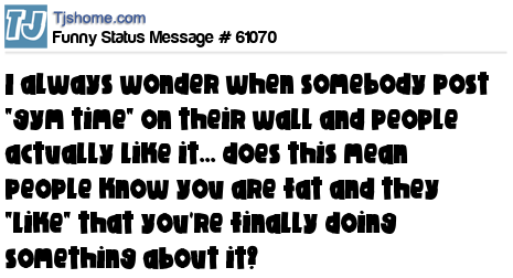 X  I always wonder when somebody post "gym time" on their wall and people actually like it... does this mean people know you are fat and they "like" that you're finally doing something about it?