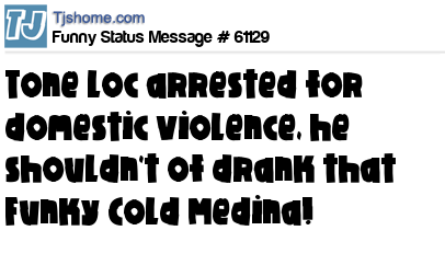 - # 61319 Tone Loc accused of domestic violence???...gonna be gettin' served that Funky Cold Subpoena...