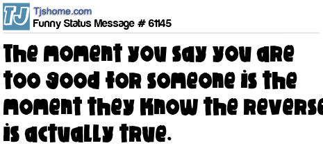 X says The moment you say you are too good for someone is the moment they know the reverse is actually true.