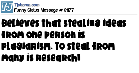 - # 67085 To steal from one is plagiarism, to steal from many is research.