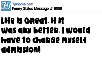 X says Life is Great, if it was any better, I would have to charge myself admission!