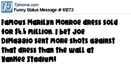X says Famous Marilyn Monroe dress sold for $4.6 million. I bet Joe DiMaggio sent more shots against that dress than the wall at Yankee Stadium!