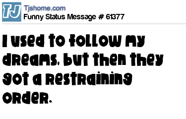 - # 90766 My teacher always used tell me to follow my dreams now it seems I have a restraining order