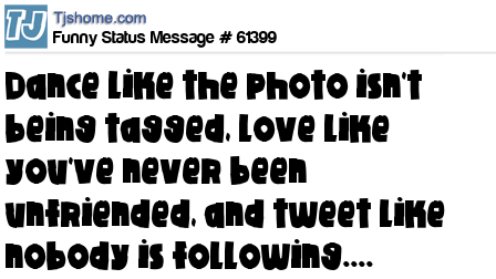 - # 30950 Dance like the photo's not being tagged, Love like you've never been unfriended, Status Update like nobody's following.