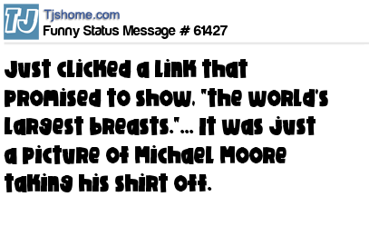 X Just clicked a link that promised to show, "the world's largest breasts."... It was just a picture of Michael Moore taking his shirt off.