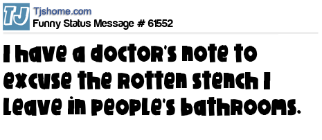 X I have a doctor's note to excuse the rotten stench I leave in people's bathrooms.