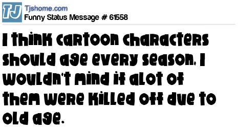 X is I think cartoon characters should age every season, I wouldn't mind if alot of them were killed off due to old age.