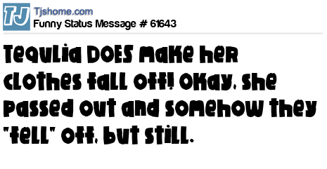 - # 114487 All alcohol will make my clothes fall off... tequila just makes that happen in public.