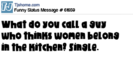 X says What do you call a guy who thinks women belong in the kitchen? Single.